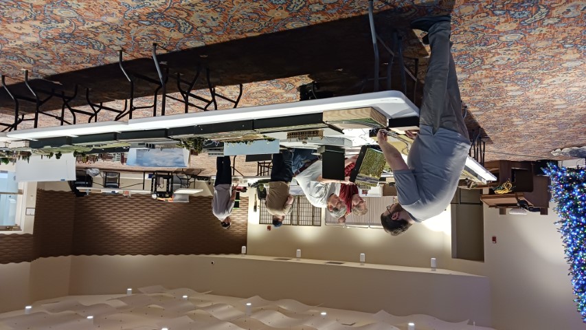 For the fourth year, BANTRAK and Harford Associates for Railroad Modeling ( HARM ) erected a combined T-Trak layout (photo) at the Roland Park Place Retirement Community in Baltimore. Just like Santa's helpers, at 8:00 am 16 model railroader elves were busy setting up a train layout by the Christmas Tree in the meeting hall of Roland Park Place. Actually it filled pretty much the entire hall. And what a layout! About 70 sections of model railroad. Doors opened at 11:00 am, and trains ran until 5:00 pm. It was all packed and out the door by 6:00 pm